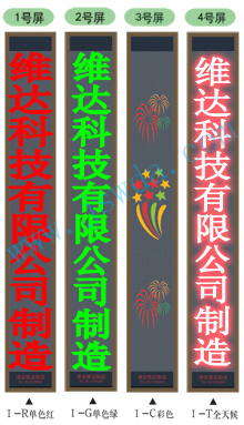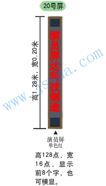 v型系列:高1.74米(192點(diǎn)),寬0.20米(16點(diǎn)),單行顯示,常用字?jǐn)?shù)不超過14個(gè)字. |